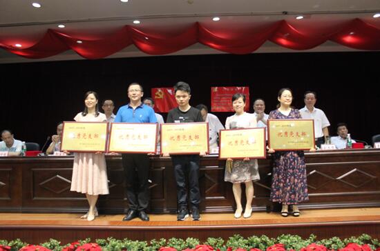 院長(zhǎng)、黨委副書(shū)記申惠龍同志宣讀《關(guān)于表彰2017-2018年度優(yōu)秀黨支部、優(yōu)秀黨務(wù)干部和優(yōu)秀共產(chǎn)黨員的決定》,為5個(gè)優(yōu)秀黨支部、7個(gè)優(yōu)秀黨務(wù)干部、54個(gè)優(yōu)秀共產(chǎn)黨員頒發(fā)了獎(jiǎng)牌和榮譽(yù)證書(shū)。申惠龍希望受到表彰的黨支部、黨務(wù)干部和共產(chǎn)黨員,珍惜榮譽(yù),再接再厲,自覺(jué)發(fā)揮先鋒模范作用,不忘初心,牢記使命,為醫(yī)院發(fā)展再立新功。全體黨員要以先進(jìn)為榜樣,立足崗位,奮發(fā)有為,敢于擔(dān)當(dāng),甘于奉獻(xiàn),為實(shí)現(xiàn)醫(yī)院持續(xù)健康發(fā)展,推進(jìn)“健康衡陽(yáng)”建設(shè)做出更大的貢獻(xiàn)。同時(shí),他提出,全體黨員及全院干部職工要認(rèn)真落實(shí)會(huì)議精神,切實(shí)抓緊醫(yī)院黨的建設(shè),扎實(shí)推動(dòng)醫(yī)院各項(xiàng)工作。