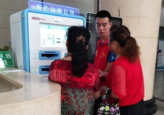 2、學生利用暑假開展社會實踐活動指導患者使用自助機。
