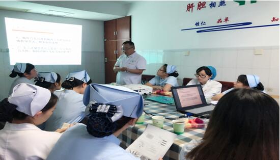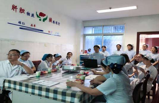通訊員唐小清報(bào)道:9月26日下午,秋雨綿綿的季節(jié),肝膽外科學(xué)習(xí)室,正在如火如荼地舉行科室護(hù)理疑難病例查房。討論會(huì)由肝膽外科護(hù)士長(zhǎng)許敏主持,特邀科室碩士研究生周舟醫(yī)生,分享“先天性膽管擴(kuò)張癥的診療及治療”,邀請(qǐng)了營(yíng)養(yǎng)科主任賀棟梁博士及多個(gè)相關(guān)專業(yè)的護(hù)理專家參加討論。許護(hù)士長(zhǎng)對(duì)賀博士及各科護(hù)士長(zhǎng)能從百忙中抽出寶貴時(shí)間來(lái)參加我科的疑難病例討論及指導(dǎo)表示熱烈的歡迎和誠(chéng)摯的感謝。