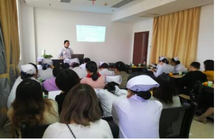 查房開始,主管護(hù)師蔣可講解消化系統(tǒng)的解剖生理、肝硬化的定義、形成機(jī)制及臨床表現(xiàn),讓與會(huì)者對(duì)肝硬化有了基本的了解。隨后,護(hù)士雷雙匯報(bào)了查房病人的病史、陽(yáng)性指標(biāo),針對(duì)病人存在的護(hù)理問(wèn)題提出了診斷及措施,提出肝硬化又伴有糖尿病的病人應(yīng)該怎么做健康宣教及控制血糖。最后,護(hù)師李玲帶領(lǐng)大家到病房進(jìn)行了生命體征測(cè)量、血糖監(jiān)測(cè)、體格檢查的操作演示,并對(duì)病人進(jìn)行了健康知識(shí)宣教。