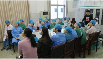 此項(xiàng)目主要內(nèi)容分為兩部分,第一是理論知識(shí)方面的培訓(xùn),通過微信答題、統(tǒng)計(jì)成績(jī)、分析理論盲點(diǎn)后進(jìn)行有針對(duì)性的理論培訓(xùn)。微信答題環(huán)節(jié),大家相當(dāng)?shù)耐度?,好幾位老師都得了高分,手術(shù)室的老師們理論知識(shí)也是相當(dāng)扎實(shí)的。在微信答題后,又進(jìn)行了理論培訓(xùn),遇到有疑問的地方,有意見不統(tǒng)一的,大家都爭(zhēng)先恐后的發(fā)表自己的看法,現(xiàn)場(chǎng)也是熱火朝天。第二是行為習(xí)慣的訓(xùn)練,通過手術(shù)室的皮膚保護(hù)信息表的填寫和監(jiān)控,導(dǎo)入統(tǒng)計(jì),分析行為盲點(diǎn)后制作預(yù)防流程圖,以指導(dǎo)護(hù)士正確的預(yù)防方法。在100天內(nèi)進(jìn)行5次面對(duì)面集中培訓(xùn),3次理論測(cè)試,每周進(jìn)行表格收集、隨時(shí)調(diào)整方案。期待理論學(xué)習(xí)加臨床實(shí)踐雙層助力,使護(hù)士壓瘡預(yù)防能力螺旋上升,100天形成新的行為習(xí)慣。