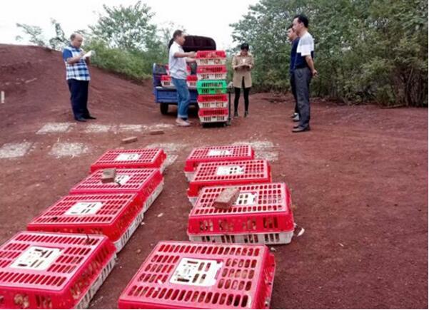 本次發(fā)放土雞活動為期2天,耒陽市淝田鎮(zhèn)肥美村35戶貧困戶每戶都免費領(lǐng)到30只平均1.95斤重的土雞,這些發(fā)放的土雞全部都是放在山上散養(yǎng)的,經(jīng)過疫苗接種,抗病力和適應能力強,飼養(yǎng)方便,成活率高。