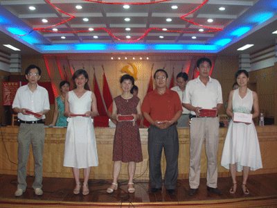我院召開慶祝建黨85周年大會(huì)(圖) 發(fā)布時(shí)間:2006年7月4日 預(yù)覽:5428次 6月30日下午,我院慶祝建黨85周年大會(huì)隆重召開。會(huì)議在雄壯的國歌聲中開幕,院黨委副書記、院長段曉明同志主持大會(huì)并發(fā)表重要講話,院黨委書記陳蘭林同志向大會(huì)作工作報(bào)告,10名預(yù)備黨員在莊嚴(yán)的黨旗下宣誓入黨,一批先進(jìn)黨支部、優(yōu)秀黨員和優(yōu)秀黨務(wù)工作者受到表彰。