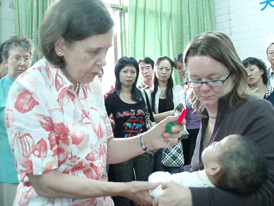 英國皇家醫(yī)學(xué)會專家來我院講學(xué)(圖) 發(fā)布時(shí)間:2006年9月14日 預(yù)覽:14700次 9月12日,應(yīng)我院邀請,英國皇家兒科醫(yī)學(xué)院榮授院士、兒童神經(jīng)內(nèi)科顧問醫(yī)生、嬰幼兒發(fā)展研究協(xié)會會長丹尼絲·查理斯(Denis Challis)教授和英國兒科顧問醫(yī)生帕特麗西婭·湯姆遜(patricia Tomsou)一行來我院講學(xué),來自全市各級醫(yī)院的150名兒科專業(yè)醫(yī)務(wù)人員參加了此次學(xué)術(shù)活動(dòng)。 英國專家通過授課和現(xiàn)場演示的形式,系統(tǒng)介紹了腦癱、孤獨(dú)癥等兒童神經(jīng)系統(tǒng)發(fā)育障礙的評估、預(yù)防對策與治療新進(jìn)展。專家們指出,由于環(huán)境、生物和疾病等因素的影響,兒童神經(jīng)系統(tǒng)發(fā)育障礙的發(fā)病率在國際上正呈上升趨勢。專家們列舉了“十條診病依據(jù)”,動(dòng)作是否遲緩?視物是否困難?聽覺是否存在問題?能否明白大人講話意思?四肢活動(dòng)是否受阻?有沒有癲癇?是否有模仿能力?能否講話?2歲時(shí)可否說出至少一個(gè)物體?有沒有其他智力落伍跡象?專家們特別強(qiáng)調(diào)在出生前4個(gè)月是預(yù)防腦癱等疾病的關(guān)鍵時(shí)期,早期干預(yù)對達(dá)到患兒最大潛能非常重要。專家呼吁全社會要高度關(guān)注心智方面有缺陷的兒童,兒科醫(yī)師要在以家庭為中心的早期干預(yù)服務(wù)中充當(dāng)重要角色,要通過進(jìn)步的專業(yè)知識以技巧,提高家長對嬰兒期行為的理解以及影響孩子行為的能力。(鄒建軍)