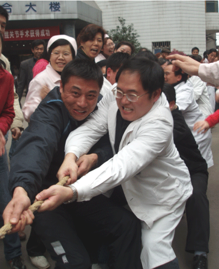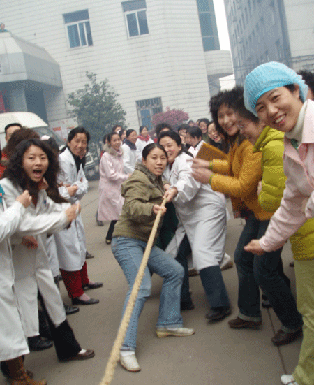 我院舉行撥河比賽(圖) 發(fā)布時(shí)間:2007年3月23日 預(yù)覽:4507次 3月21日下午,全院職工拔河比賽在外科大樓前坪舉行。12支代表隊(duì)參加比賽,分男女隊(duì)進(jìn)行。比賽結(jié)果:門(mén)診醫(yī)技隊(duì)、機(jī)關(guān)隊(duì)、外科隊(duì)分獲男隊(duì)冠亞季軍,外科隊(duì)、門(mén)診醫(yī)技隊(duì)、機(jī)關(guān)隊(duì)分獲女隊(duì)冠亞季軍。(建軍)