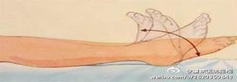 2)踝泵運動:臥床,伸直雙下肢,雙踝自然放松,然后背伸運動,背伸時要達到最大限度,堅持5秒。然后從最大背伸狀態(tài)開始做跎屈,堅持5秒,跎屈也要達到最大限度。如此反復(fù)進行,3次/天。