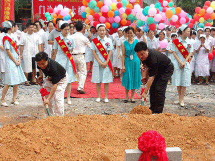 我院門(mén)診綜合大樓隆重奠基 發(fā)布時(shí)間:2007年7月11日 預(yù)覽:4991次 7月10日,碧空萬(wàn)里,艷陽(yáng)高照。我院門(mén)診綜合大樓奠基儀式隆重舉行。 當(dāng)天上午,門(mén)診綜合大樓建設(shè)工地上彩球飄揚(yáng),樂(lè)聲陣陣。市黨政領(lǐng)導(dǎo)張自銀、胡國(guó)初、王雄飛、楊邦偉、石正宏、廖本翔、劉日煊等出席了儀式,市有關(guān)部辦委局領(lǐng)導(dǎo)、雁峰區(qū)領(lǐng)導(dǎo)、市直醫(yī)療衛(wèi)生單位負(fù)責(zé)人以及施工單位和醫(yī)院代表近600人見(jiàn)證了這一盛典。 市委副書(shū)記張自銀代表市委、市人大、市政府、市政協(xié)發(fā)表了重要講話(huà)(全文另發(fā))。 院黨委書(shū)記、院長(zhǎng)申錦林代表醫(yī)院作了熱情洋溢的致辭(全文另發(fā))。 講話(huà)后,市領(lǐng)導(dǎo)、市衛(wèi)生局領(lǐng)導(dǎo)和醫(yī)院領(lǐng)導(dǎo)為門(mén)診綜合大樓奠基揮楸培土。 市衛(wèi)生局局長(zhǎng)趙安民主持了奠基儀式。 (文:建軍 圖:波勇)