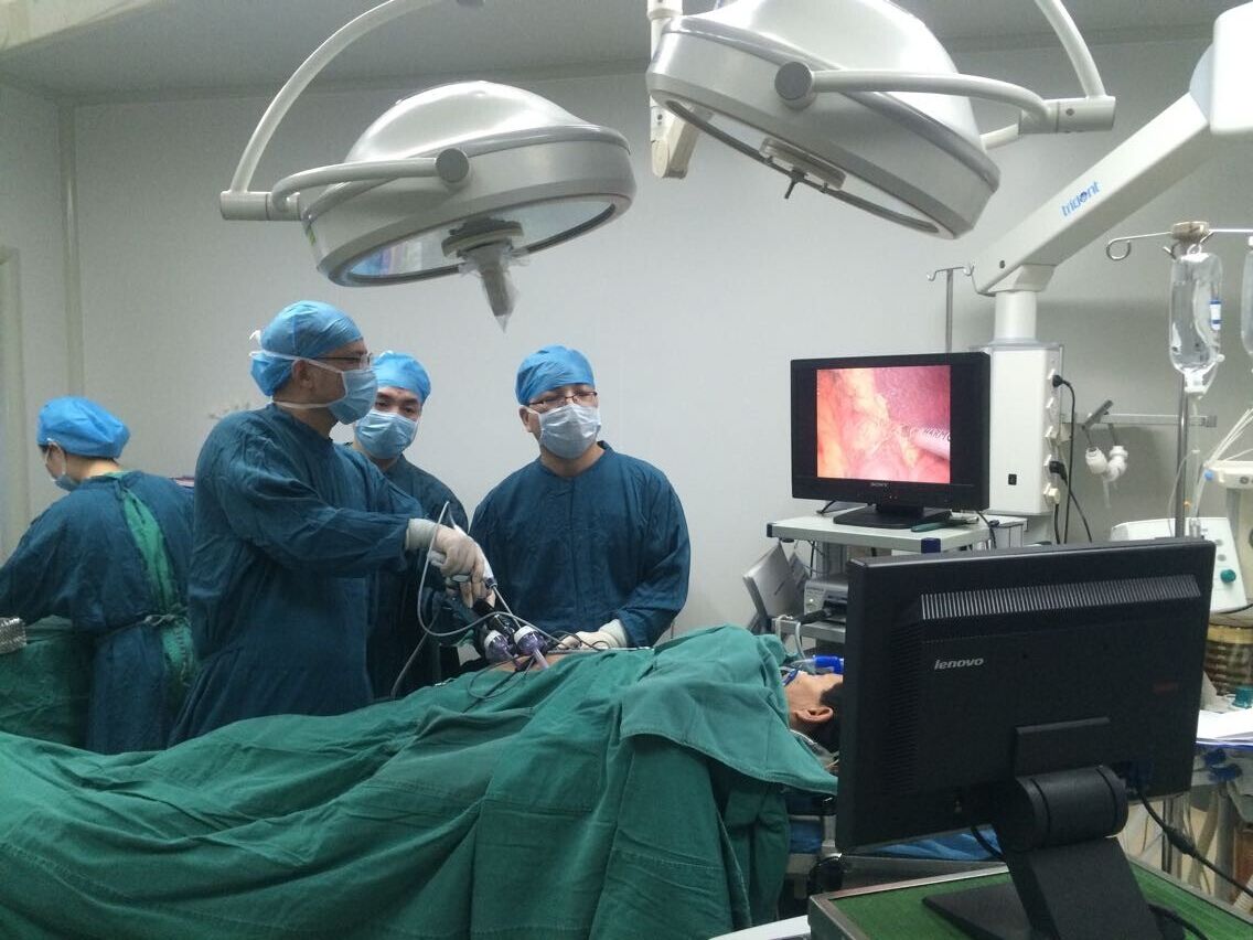 對(duì)于多原發(fā)癌的治療,目前仍采用手術(shù)為主,化放療相結(jié)合的綜合治療手段。此類患者,若采取傳統(tǒng)開腹手術(shù),手術(shù)創(chuàng)面將波及整個(gè)腹部,腹部將會(huì)遺留至少長(zhǎng)約20cm手術(shù)疤痕,術(shù)后恢復(fù)慢,住院時(shí)間長(zhǎng),腫瘤種植復(fù)發(fā)、切口裂開、切口疝的概率將大大增加。而采用腹腔鏡手術(shù),患者完全不用擔(dān)心腫瘤切不干凈,因?yàn)楦骨荤R手術(shù)視野將放大6倍,不但能將腫瘤完整切除,更能將細(xì)小的癌灶及淋巴結(jié)完整清除,同時(shí)減少了腹部創(chuàng)傷,腹部也僅僅會(huì)遺留一長(zhǎng)約5cm手術(shù)疤痕,但腹腔鏡手術(shù)要求高,技術(shù)難度大,國內(nèi)外腹腔鏡下胃結(jié)腸同發(fā)癌一期根治較少,而衡陽市尚未有類似報(bào)道。