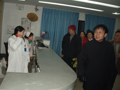 我院領(lǐng)導(dǎo)除夕夜深入一線慰問醫(yī)護(hù)人員 發(fā)布時(shí)間:2008年2月13日 預(yù)覽:4329次 大年三十晚上,全體院領(lǐng)導(dǎo)和部分職能科室負(fù)責(zé)人深入醫(yī)療一線慰問在崗醫(yī)護(hù)人員,并為他們送去新年的祝福。(建軍攝)