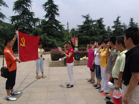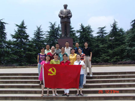 黨員歡聚韶山 發(fā)布時間:2008年6月28日 預(yù)覽:10257次 黨員活動 中國共產(chǎn)黨誕辰87周年前夕,醫(yī)院黨委于6月26日組織8名新黨員和部分優(yōu)秀黨員赴韶山參觀學(xué)習(xí),并在毛澤東銅像廣場莊嚴(yán)宣誓。圖為黨員宣誓和參觀學(xué)習(xí)照片。 院辦:冷曉君