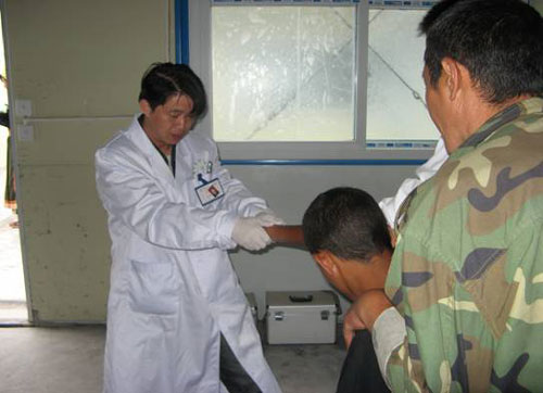 理縣救災(zāi)工作醫(yī)療小組圓滿完成任務(wù) 發(fā)布時(shí)間:2008年12月9日 預(yù)覽:3707次 經(jīng)過兩個(gè)多月的艱辛工作,衡陽市中心醫(yī)院第三批對(duì)口支援四川理縣救災(zāi)工作醫(yī)療小組圓滿完成任務(wù)近日回院。在災(zāi)區(qū)期間,醫(yī)療小組共接診患者864人,實(shí)施手術(shù)66臺(tái),并為當(dāng)?shù)蒯t(yī)院的災(zāi)后重建和醫(yī)務(wù)人員培訓(xùn)做了大量工作。圖為該院骨科專家、理縣人民醫(yī)院工作組組長唐雄副主任醫(yī)師為骨折病人做石膏固定和下鄉(xiāng)巡診的場景。(建軍)